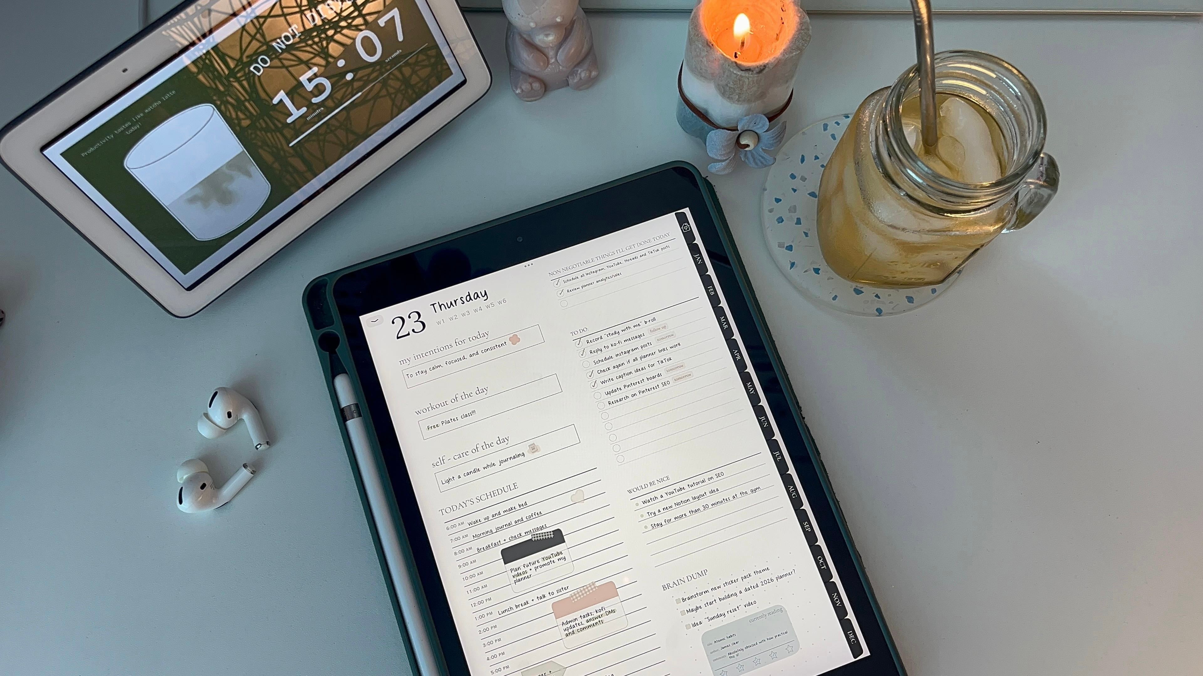 This undated digital planner helps you stay focused, balanced, and creative — all while keeping your screen calm and cozy.